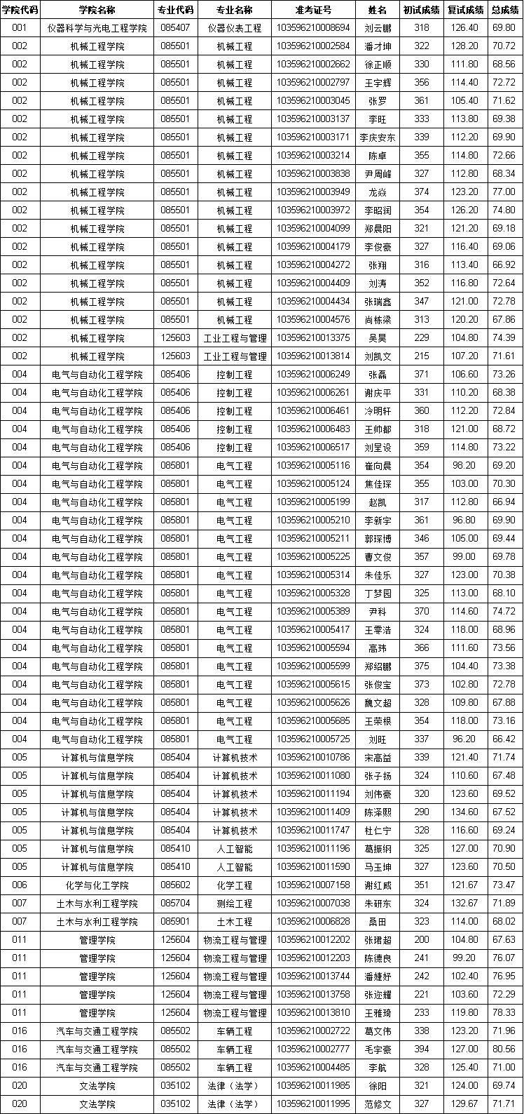 附表:合肥工业大学退役大学生士兵专项硕士研究生招生拟录取名单